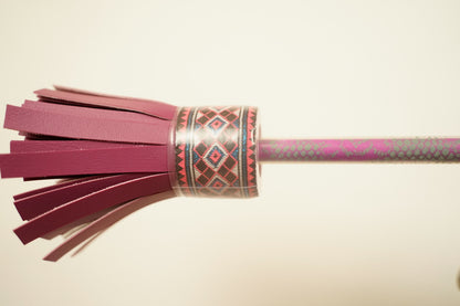 Alle Sticks sind in mehreren Lack-Schichten, mit in teils sehr aufwendig geklebten und genähten Mustern lackiert.