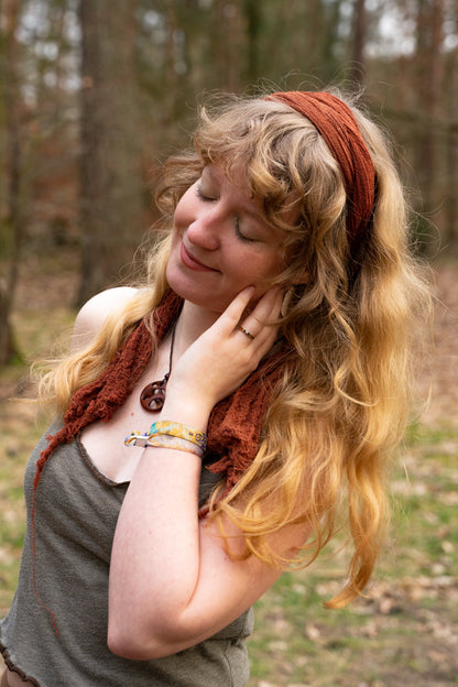 Dieses Kopftuch ist aus leichtem Gaze gefertigt und von Hand gefärbt.