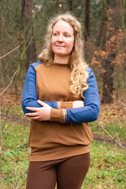 Auch in den Ärmeln ist er zweilagig und überall mit weichem Bündchen abgeschlossen.