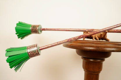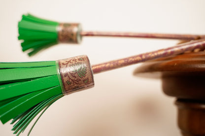 Alle Sticks sind in mehreren Lack-Schichten, mit in teils sehr aufwendig geklebten und genähten Mustern lackiert.
