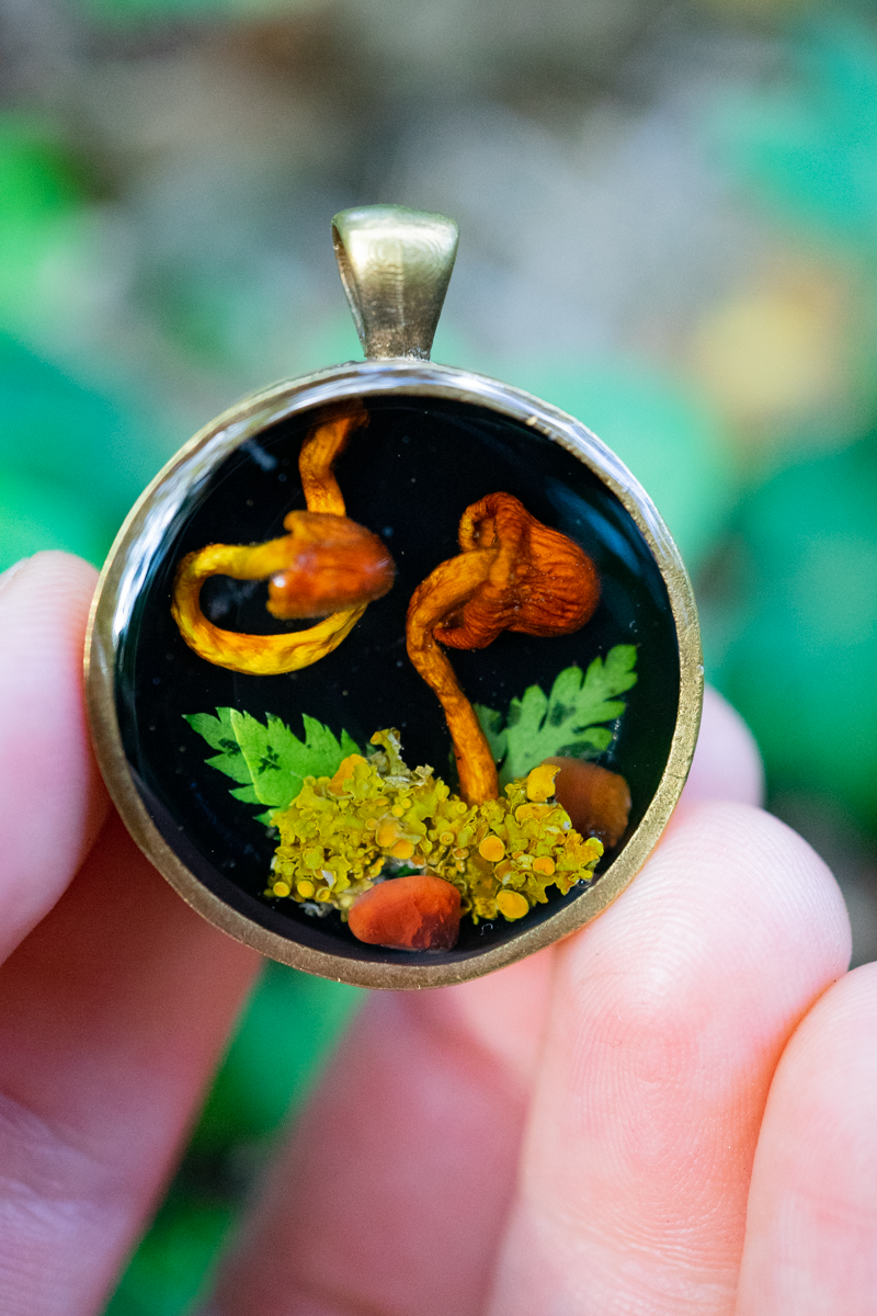 - Material: Messing (Antiallergen), Epoxidharz, Pflanzen & Pilze