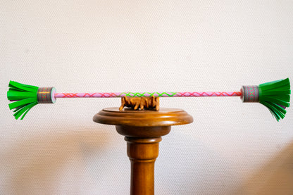 Um das Muster zu schützen und besseren halt beim spielen zu gewährleisten bekommt jeder Glasfaserstab einen medizinischen Silikonüberzug.