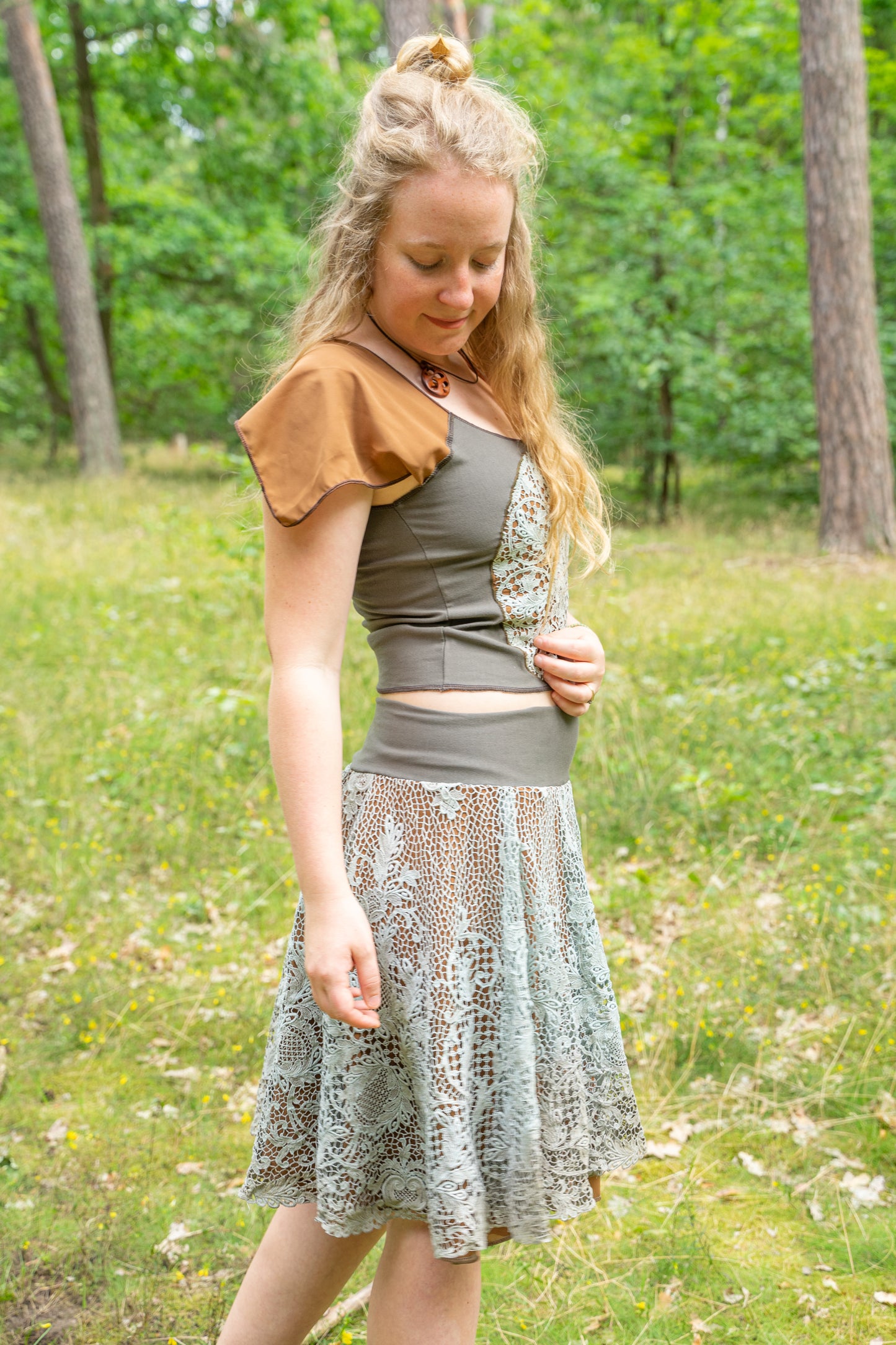 Für das Oberteil und das Bündchen des Rocks wurde ein weicher und elastischer Bündchenstoff von Stoffonkel (GOTS) verwendet.
