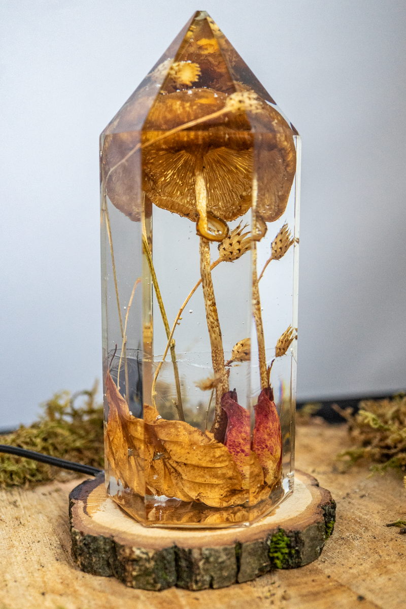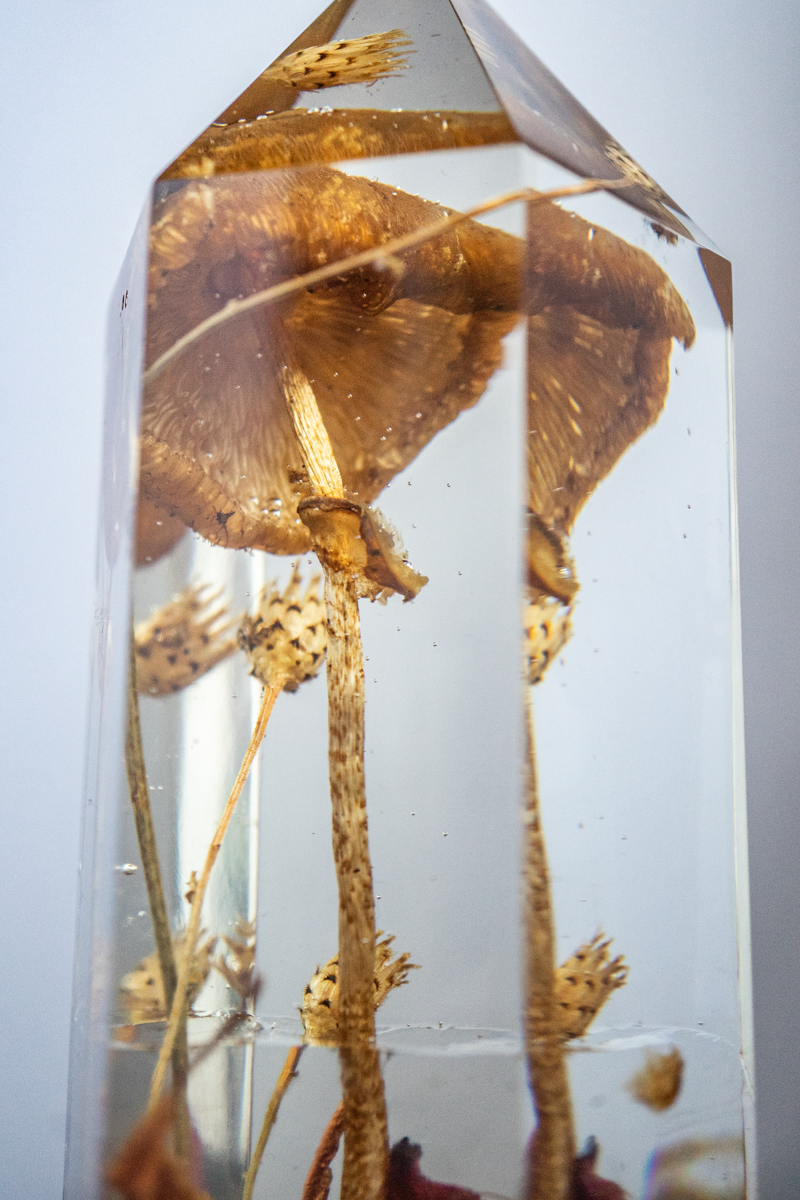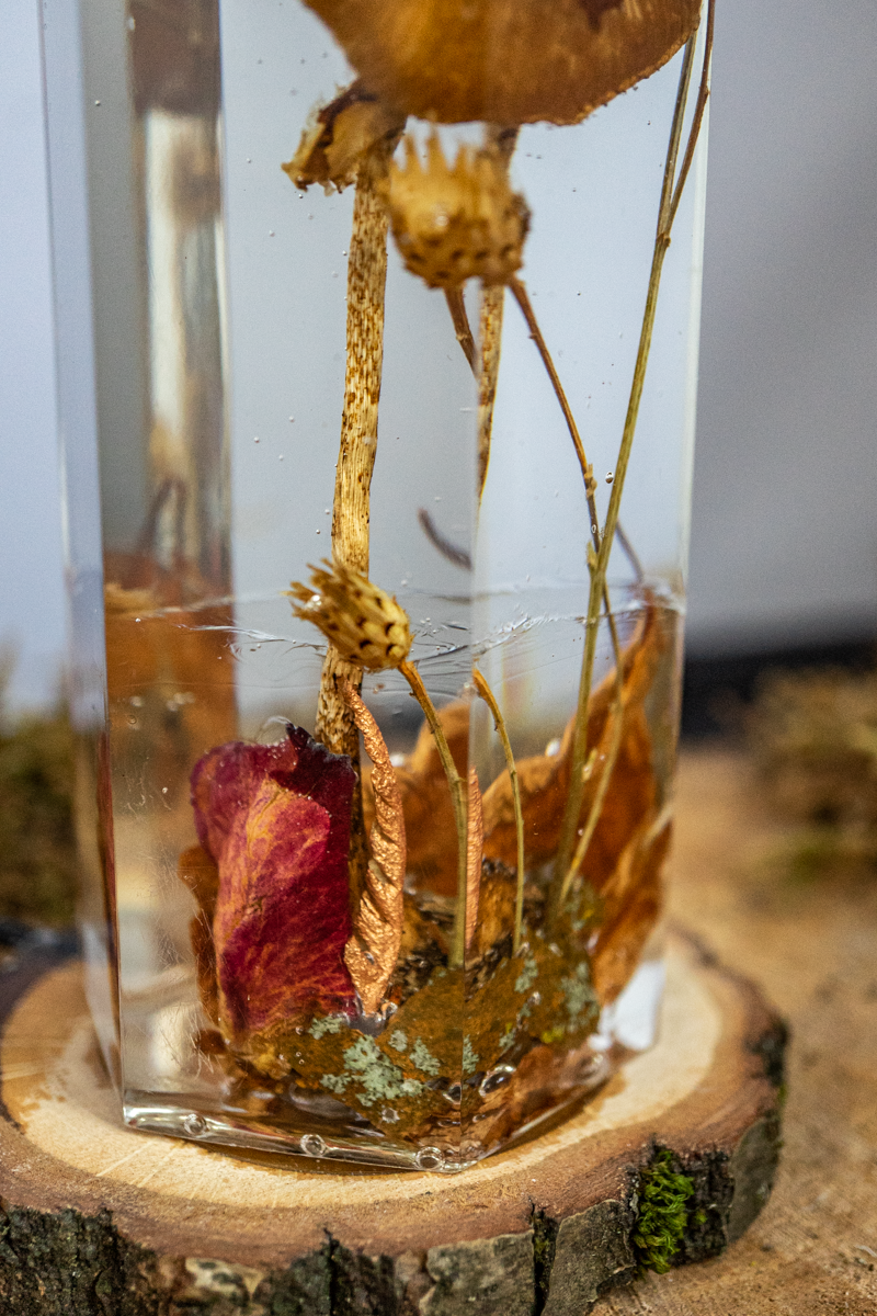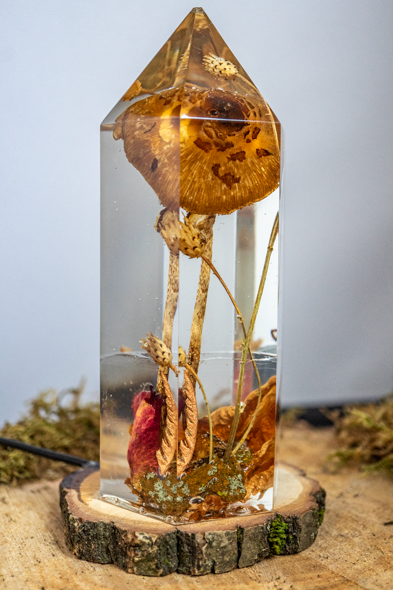 • Material: Epoxidharz*, Riesenschirmling, Buchenblätter, Rosenblättern, Disteln