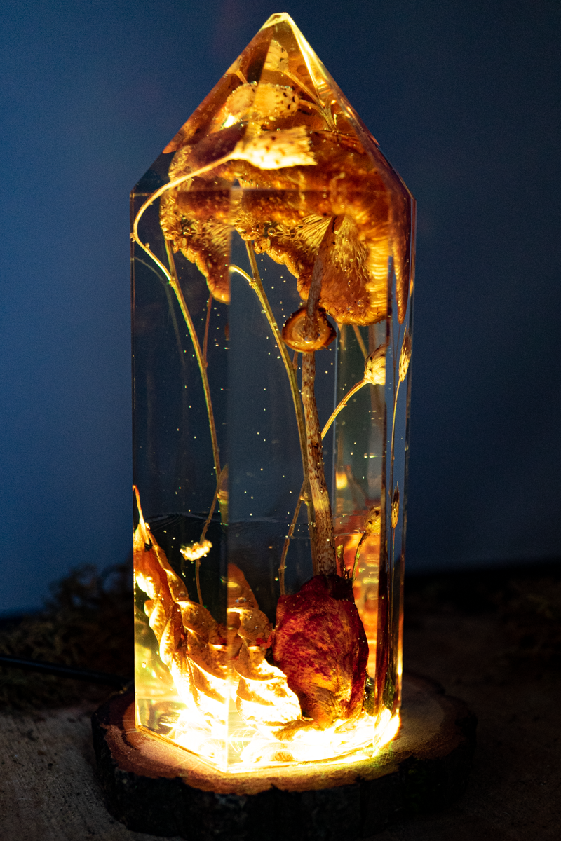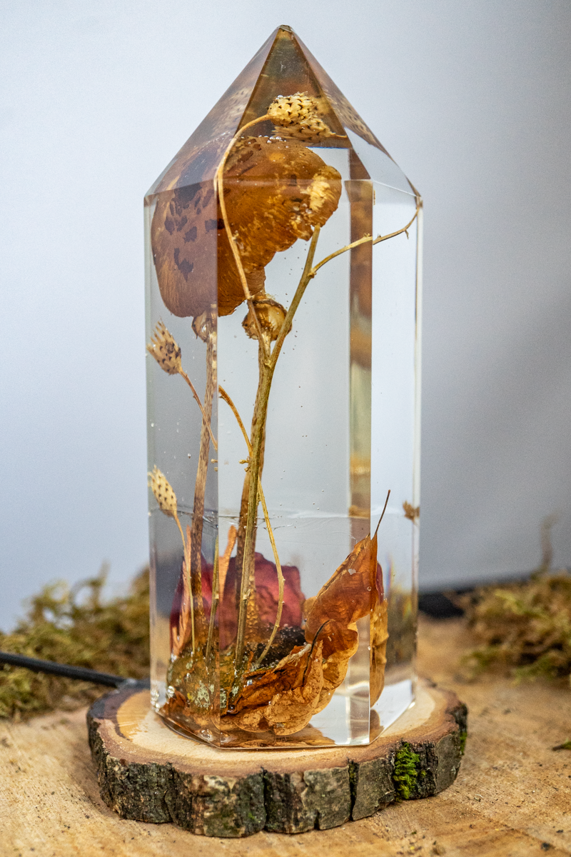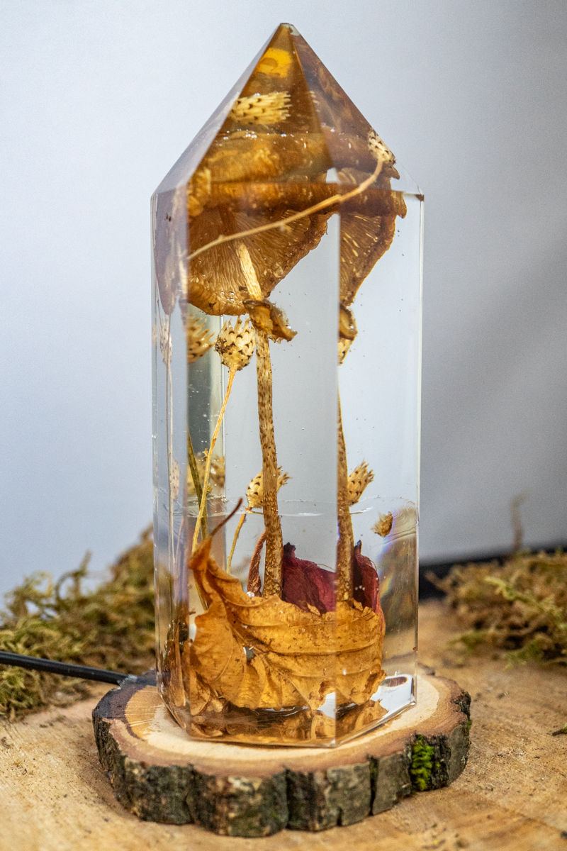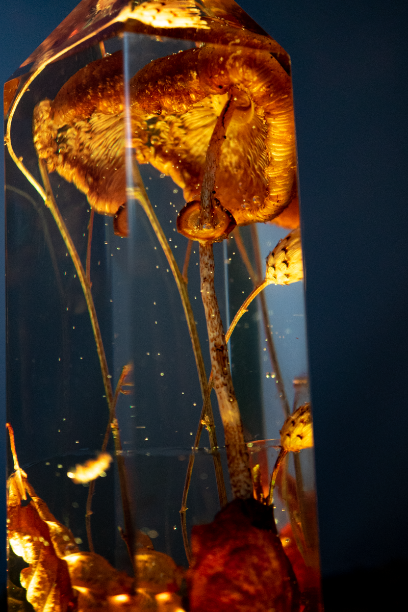 • Material: Epoxidharz*, Riesenschirmling, Buchenblätter, Rosenblättern, Disteln