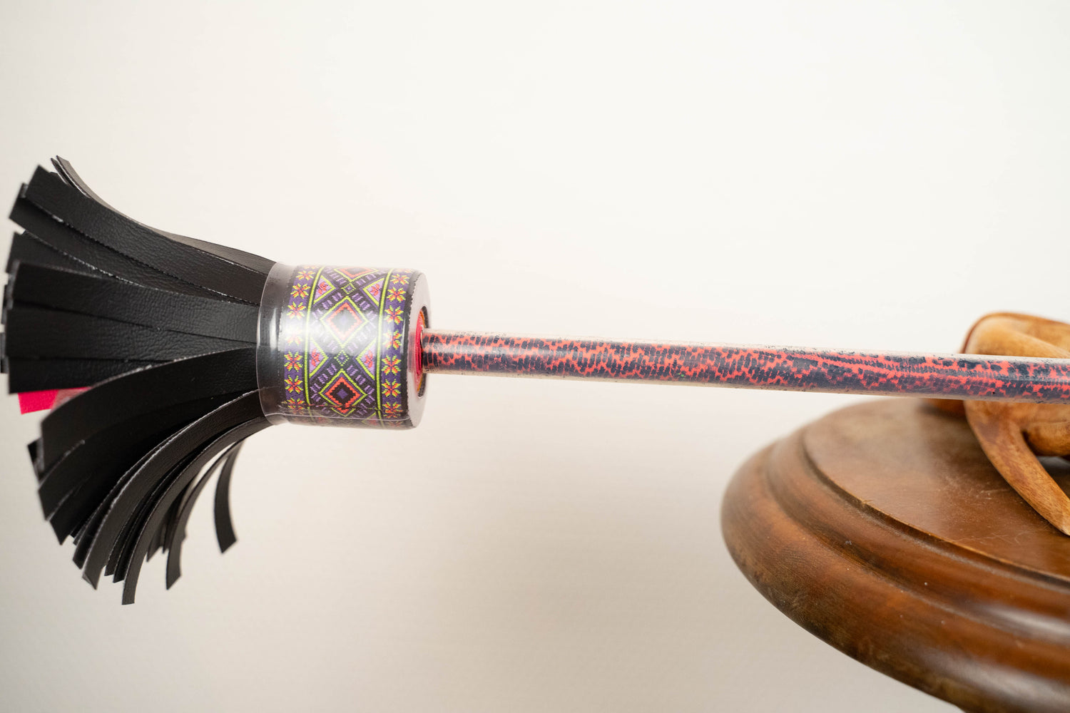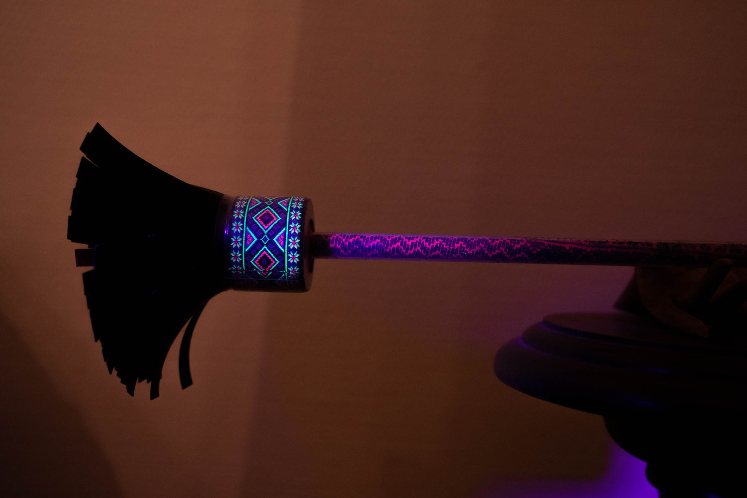 Alle Sticks sind in mehreren Lack-Schichten, mit in teils sehr aufwendig geklebten und genähten Mustern lackiert.