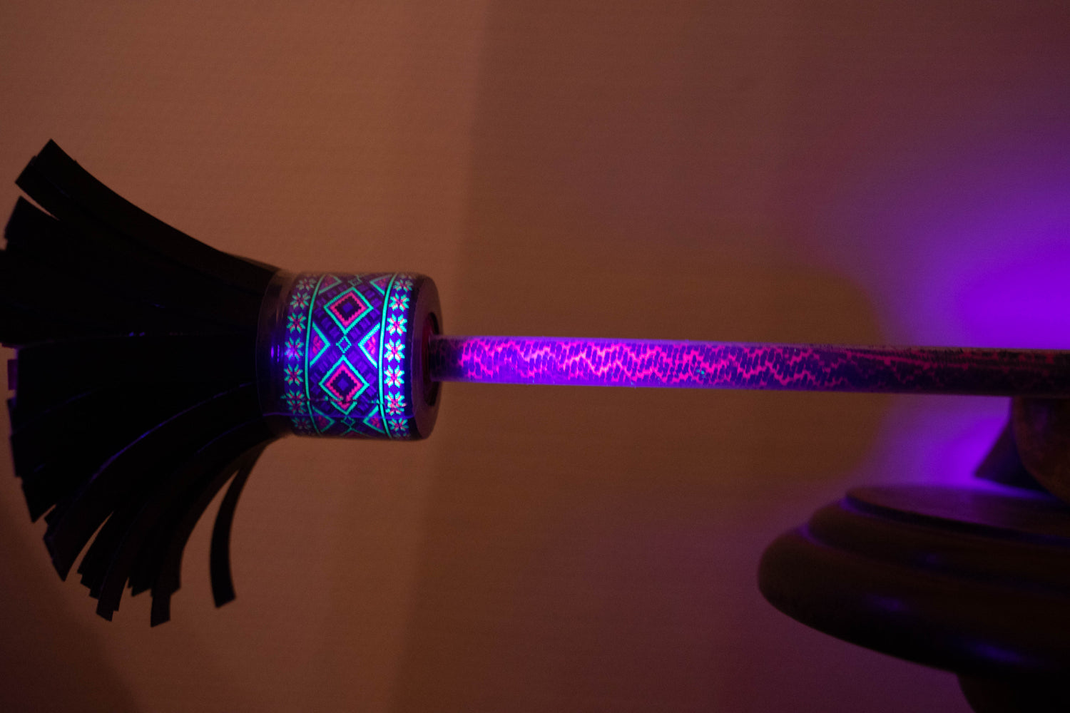 Um das Muster zu schützen und besseren halt beim spielen zu gewährleisten bekommt jeder Glasfaserstab einen medizinischen Silikonüberzug.
